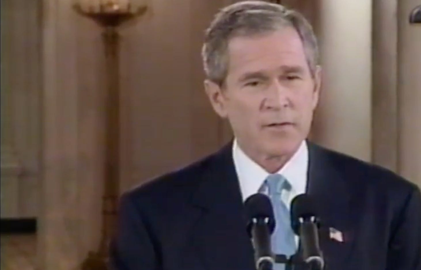 All you really need to see to understand exactly what happened is this clip from October 2001 when President George W. Bush, just a little over a month beyond the terrorist attacks of September 11th, told Americans that al-Qaeda’s plan was to attack freedom and keep Americans from shopping. “The American people have got to go about their business,” he said. “We cannot let the terrorists achieve the objective of frightening our nation to the point where we don’t conduct business. Where people don’t shop. That was their intention.”